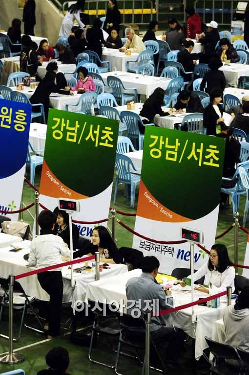 [아시아경제 윤동주 기자] 보금자리주택 일반 공급이 사전예약이 시작된 26일 서울 강서구 KBS 88체육관에 청약접수자들이 몰려 성황을 이루고 있다.