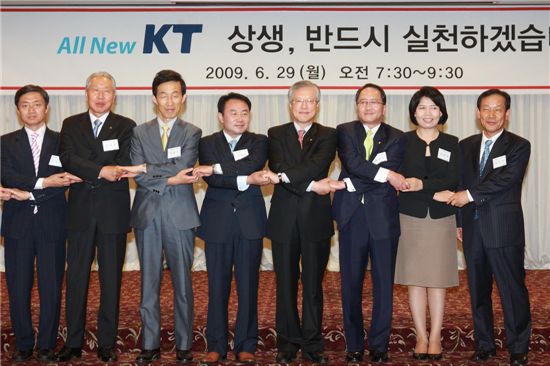 이석채 KT회장도 직접 전면에 나서 혁신을 주도하고 있다. 중기와의 관계가 더이상 '갑을'이 아닌 '행복동반자'라는 발상의 전환을 독려하고 있는 것이다. 이석채 회장은 "KT의 역량을 협력사에 더하고(加), 불필요한 프로세스는 폐지하며(減), KT와 협력사의 시너지를 극대화하여(乘), 나온 성과는 함께 공유(除)하는 '상생의 사칙연산'을 지속적으로 추진해 협력사, 고객, 주주, 사회, 국가 등 이해관계자들에게 다양한 이익을 제공할 계획"이라고 말했다.