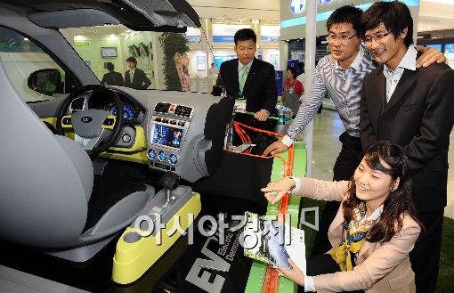 [아시아경제 이재문 기자] 27일 오후 서울 삼성동 코엑스에서 열린 ‘2009 서울국제종합전기기기전’을 찾은 시민들이 LS산전의 전기자동차에 사용되는 전장품을 살펴보고 있다.