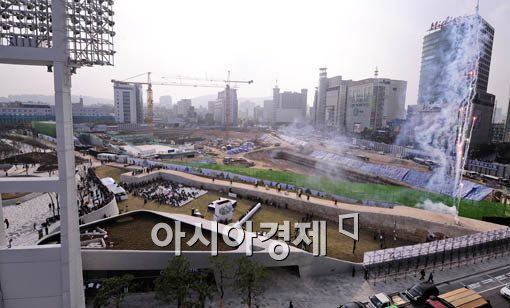 오세훈 서울시장, 앙드레김, 하일성 야구 해설위원등 주요인사들이 참석한 가운데 개장 행사가 열리고 있다.