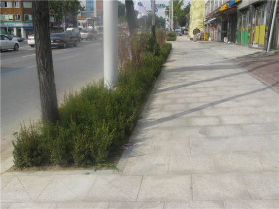 이번 공사는 울퉁불퉁한 보도를 저채도ㆍ저명도의 화강석 판석(6190㎡)으로 교체, 평탄도를 높이고 볼라드 맨홀 휀스 공중전화부스 통합지주 등 총 9종의 233개의 가로시설물을 깔끔하고 세련된 디자인 시설물로 교체했다.