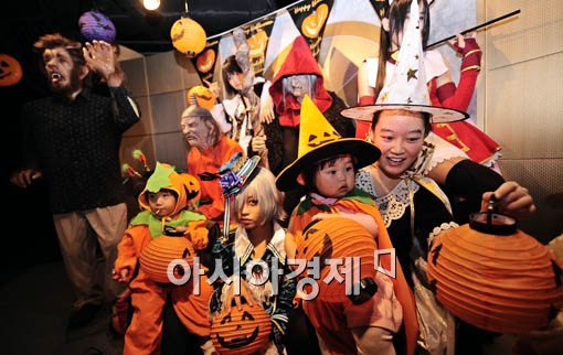 [아시아경제 윤동주 기자] 28일 서울 여의도 63빌딩에서 열리고 있는 63왁스뮤지엄 내 공포체험관을 찾은 아이들이 할로윈 복장을 하고 활짝 웃고 있다.