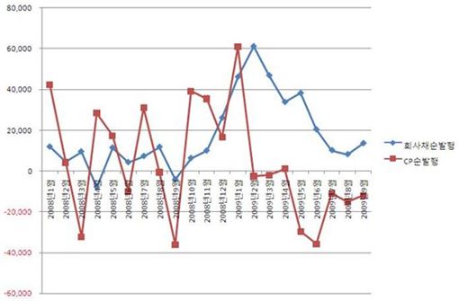 외국계 자산운용사의 한 관계자도 “기업들의 자금조달이 별로 이뤄지지 않아 CP발행이 많이 줄었다”며 “기업들이 자금조달목적으로 CP보다는 채권을 선호하고 있는 것이 가장 큰 요인”이라고 지적했다.