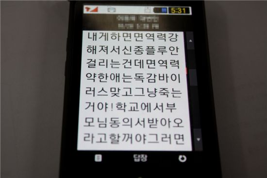 신종플루 괴소문은 학생들 사이에서 휴대폰 문자메세지로 유포되고 있다. 대책본부가 실례로 소개한 메세지는 "신종플루 백신의 임상실험이 오래 걸려서 학생들을 대상으로 실험하는 것…면역력이 약한 사람은 주사를 맞고 죽는다" "원래 노인이 대상이었는데 학생들이 건강하다는 이유로 먼저 맞추는 것"이라는 내용이다.