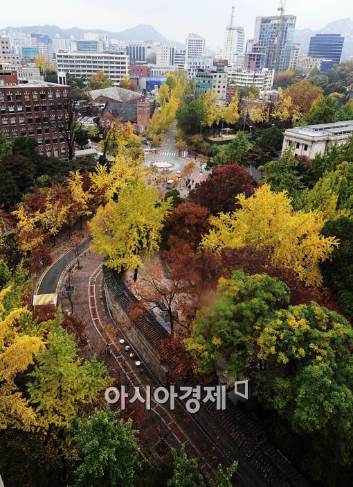 [아시아경제 윤동주 기자] 단풍나무와 은행나무 등 형형색색의 낙엽들이 이쁘게 떨어져 가을 냄새가 물씬 풍기는 서울 중구 덕수궁 돌담길을 시민들이 정답게 걸어가고 있다.