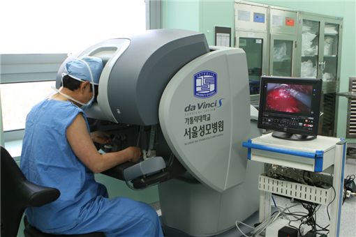 1일 서울성모병원에 따르면 국내 최초로 제3세대 로봇수술기(다빈치)를 도입한 병원 츠근 지난 3월 25일 첫 수술 후 약 7개월만인 10월 28일 100번째 수술을 시행했다. 그 간 전립샘암(43건), 위암(12건), 부인암(8건), 직장암(5건) 등 주요 암 질환은 물론 신장분야, 비뇨기질환 등 다양한 분야에서 로봇수술이 이루어졌다.