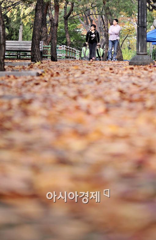 [아시아경제 윤동주 기자] 단풍나무와 은행나무 등 형형색색의 낙엽들이 이쁘게 떨어져 가을 냄새가 물씬 풍기는 서울 남산의 한 공원을 찾은 ㅅ민들이 정답게 걸어가고 있다.