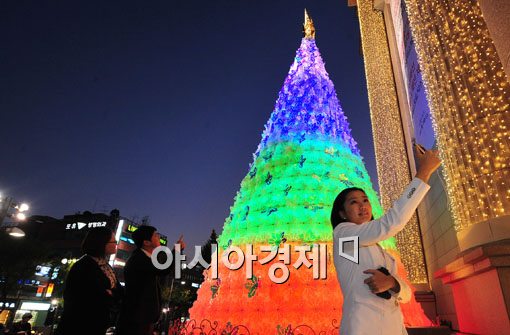[아시아경제 윤동주 기자] 1일 오후 서울 압구정 현대백화점 본점앞에 크리스마스트리가 환하게 불을 밝혀 지나는 시민들 발걸음 붙잡고 있다.