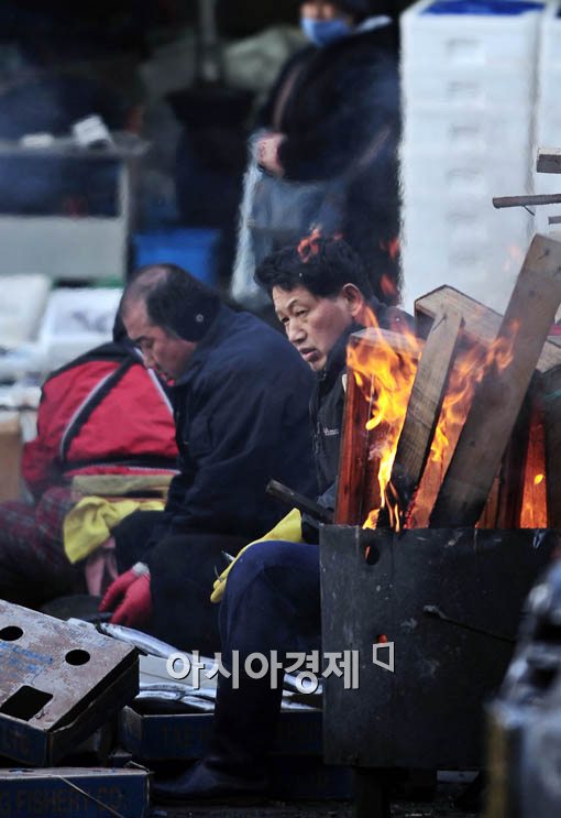 [아시아경제 윤동주 기자] 서울아침 체감기온이 영하 5.3도를 기록하는등 전국 곳곳에 한파주의보가 내려진 2일 서울 중구 봉래동의 한 재래시장 상인들이 갑작스레 찾아온 추위를 피하기 위해 모닥불을 지피고 있다.