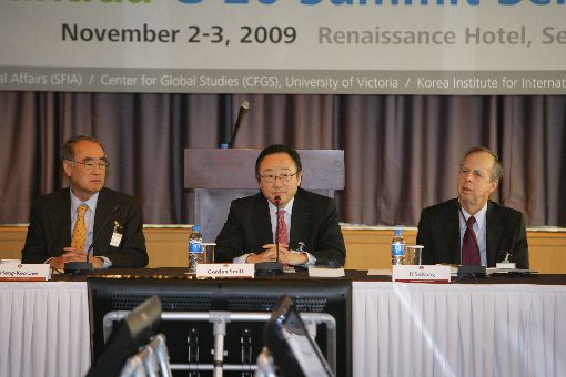 $pos="C";$title="무역협회";$txt="(사진 왼쪽부터) 이홍구 서울국제포럼 이사장, 사공일 한국무역협회 회장, 고든 스미스 캐나다 빅토리아대학 국제연구센터 센터장";$size="510,340,0";$no="200911030952322826653A_1.jpg";@include $libDir . "/image_check.php";?>[아시아경제 손현진 기자]서울국제포럼과 대외경제정책연구원, 캐나다 빅토리아 대학 국제연구센터가 3일 서울 역삼동 르네상스호텔에서 2010년 G20 정상회의를 주최하는 캐나다와 한국간의 협력방안 및 의제논의를 위한 세미나를 공동 개최했다.