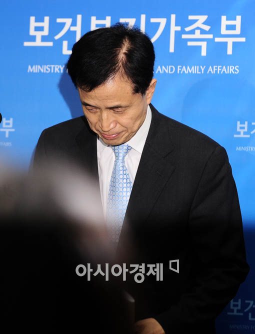 [아시아경제 윤동주 기자] 신종플루에 대한 국가전염병 재난단계가 최고 수준인 '심각(RED)' 단계로 높아진 가운데 3일 서울 종로구 가회동 보건복지가족부에서 박하정 보건의료정책실장이 신종플루 관련 대책을 발표하기전 고개를 숙이고 있다.