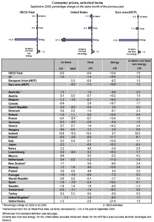 9월 식품 물가 상승률의 OECD 평균은 -0.7%였다.