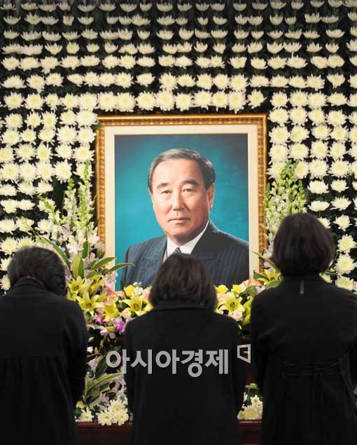 [아시아경제 윤동주 기자] 4일 고 박용오 회장의 빈소가 차려진 서울대병원 장례식장을 찾은 조문객들의 조의를 표하고 있다.