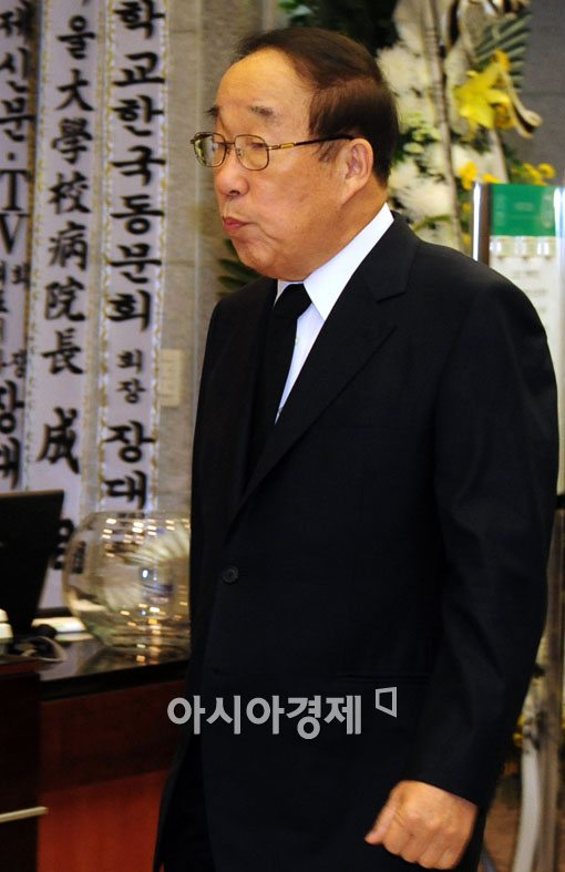 [아시아경제 윤동주 기자] 4일 오후 서울대학교병원 장례식장에서 故 박용오 전 두산그룹 회장의 동생 박용성 두산중공업 회장이 조문을 위해 굳은 표정으로 빈소에 들어서고 있다.