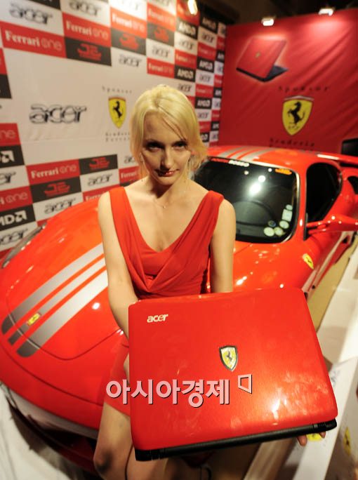 [아시아경제 윤동주 기자] 에이서코리아는 6일 서울 중구 프라자호텔에서 '2세대 AMD 울트라씬 노트북 플랫폼'을 기반으로 제작된 '페라리 원' 노트북을 출시, 레이싱모델이 스포츠카 페라리앞에서 선보이고 있다.