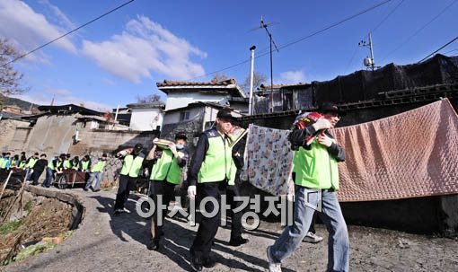 [아시아경제 윤동주 기자] KT 사랑의 봉사단 및 김우식 KT개인고객부문사장은 9일 서울 노원구 중계본동 저소득층밀집지역에서 연탄배달 및 쌀가마 기증 봉사활동을 펄치고 있다.
