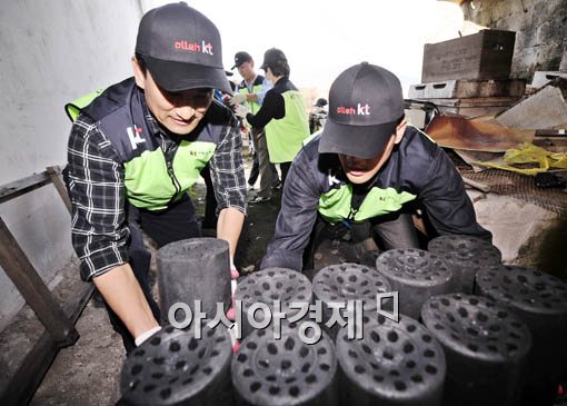 [아시아경제 윤동주 기자] KT 사랑의 봉사단 및 김우식 KT개인고객부문사장은 9일 서울 노원구 중계본동 저소득층밀집지역에서 연탄배달 및 쌀가마 기증 봉사활동을 펄치고 있다.