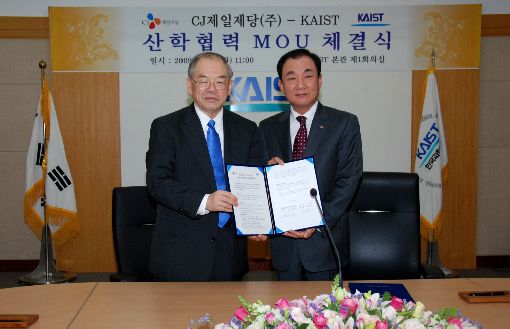 $pos="C";$title="CJ제일제당";$txt="";$size="510,329,0";$no="200911101350524208080A_1.jpg";@include $libDir . "/image_check.php";?>[아시아경제 조강욱 기자] 김진수 CJ제일제당 대표이사(오른쪽)와 서남표 KAIST 총장이 10일 대전 KAIST에서 기초기술 연구 상생협력을 위한 업무협정 체결식을 갖고 기념촬영을 하고 있다.