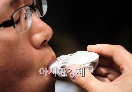 [아시아경제 윤동주 기자] 새로운 신종인플루엔자 치료제인 경구 흡입용 항바이러스제 리렌자에 대해 10일 서울 중구 계동 보건복지가족부에서 제약관계자가 투여 방법에 대해 시연을 해보고 있다.
