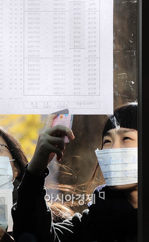 [아시아경제 윤동주 기자] 2010학년도 수능을 하루 앞둔 11일 서울 중구 이화여고를 찾은 수험생들이 자신의 시험장 위치를 휴대폰으로 사진을 찍고 있다.
