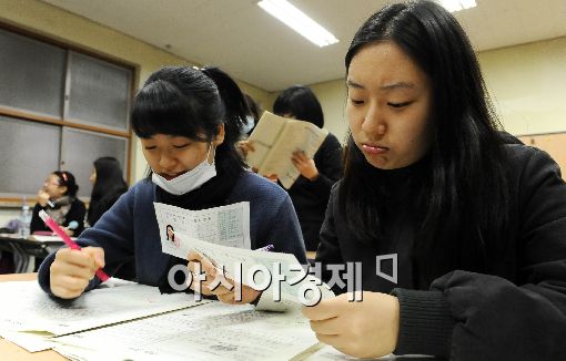 [아시아경제 이재문 기자] 13일 오전 2010년 대학수학능력시험을 마친 서울 명동 계성여고 3학년 학생들이 수능 가채점을 하고 있다.