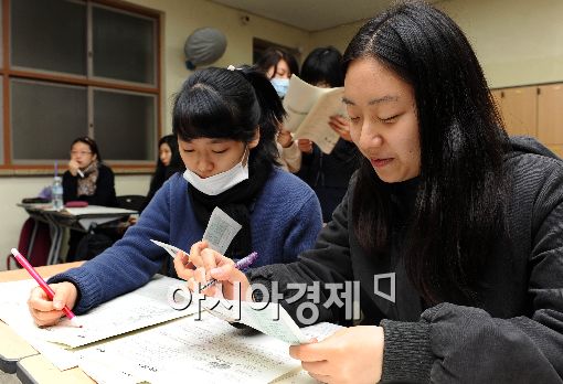 [아시아경제 이재문 기자] 13일 오전 2010년 대학수학능력시험을 마친 서울 명동 계성여고 3학년 학생들이 수능 가채점을 하고 있다.