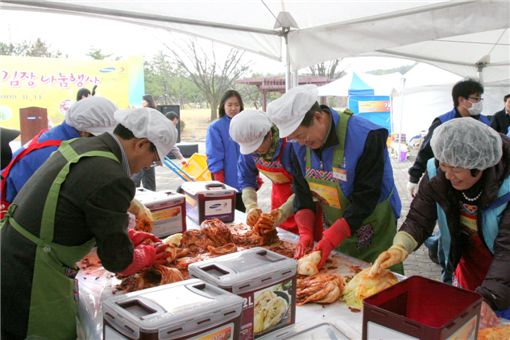 '행복한 김장 나눔 축제'로 불린 이번 김장행사는 직원들이 함께 김치를 담그면서 직장 선후배 및 세대 간, 나아가 가정에서 부부간의 소통의 간격을 줄이고 해외기업 합작회사라는 특징을 살려 김치로 대표되는 한식문화를 세계로 홍보하는 계기로 삼자는 취지에서 마련됐다.