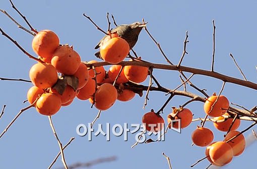 [아시아경제 윤동주 기자] 매서운 겨울 바람이 분 15일 서울의 한 고등학교 교정에 직박구리가 아직 미쳐 수확하지 못한 홍시를 맛있게 먹고 있다.