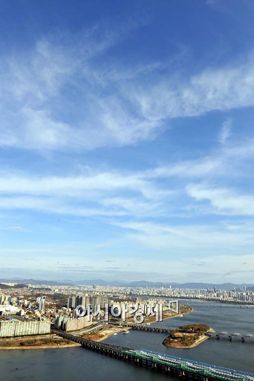 15일 서울 여의도 63빌딩에서 바라본 서울 하늘의 맑고 청명한 모습을 보여주고 있다.