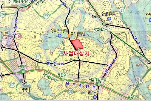 봉천 제4-1-2구역은 국사봉터널 입구에 위치하며 북측의 상도근린공원과 연계돼 있고 남쪽으로 관악산이 한눈에 보여 조망경관이 우수한 단지다.