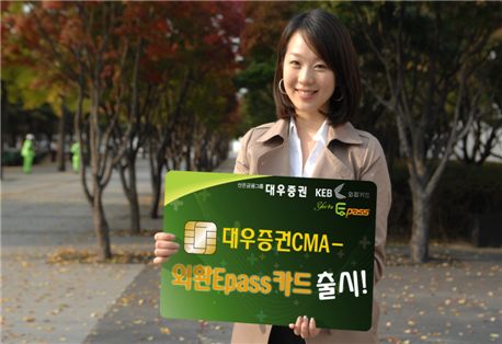 '대우증권CMA-외환Epass카드'는 기존 CMA보유 고객은 물론 신규 고객 모두 신청 가능하며 대우증권 전 영업점에서 가입 할 수 있다. (문의 : 1588-3322)
