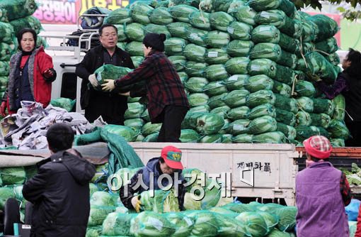 [아시아경제 윤동주 기자] 김장철이 다가오면서 가락동 농수산물시장의 상인들이 바빠졌다.