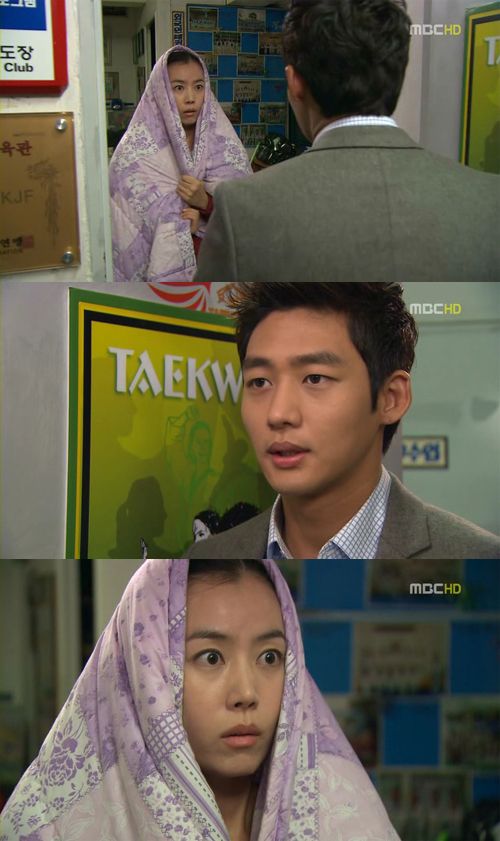 아버지 인식(임채무 분)이 재벌가 외동딸 나리(유주희 분)와 혼인을 원하던 중 민수의 임신 사실을 알게 된 유진이 민수를 만나기 위해 체육관을 찾아 청혼한 것.