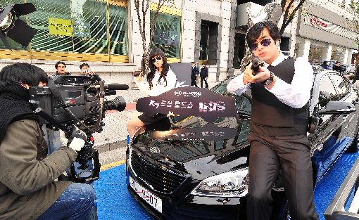 이와 함께 로드쇼가 펼쳐지는 도심 곳곳에서 드라마 아이리스를 연상시키는 모델들이 K7 관련 홍보물을 배포한다.
