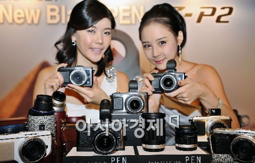 [아시아경제 이재문 기자] 올림푸스한국이 19일 오전 서울 소공동 조선호텔에서 열린 신제품 기자간담회에서 PEN E-P2를 선보이고 있다. PEN E-P2는 144만 고화소를 내장한 '라이브 파인더' 탑재로 선명한 화질의 라이브 뷰 촬영이 가능한 것이 특징이다.