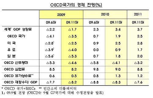 아울러 OECD는 오는 2011년엔 세계경제가 평균 3.7%의 성장률을 기록하고 OECD 회원국 평균은 2.5%가 될 것으로 예상했다.