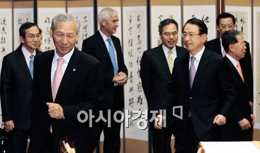 [아시아경제 윤동주 기자] 20일 서울 남대문로 한국은행에서 열린 금융협의회에 이성태 한국은행 총재와 시중은행장들이 참석하고 있다.