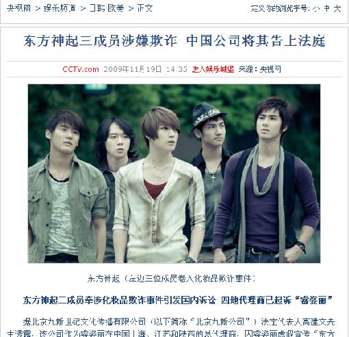 CCTV는 19일 '동방신기3인멤버 사기혐의, 중국회사가 법정에 고발', tom닷컴은 '동방신기 3명 멤버 관련 화장품사기사건 중국 내 소송 초래', 차이나데일리는 '동방신기3인 멤버 사기혐의, 중국회사가 법정에 고발', 소후닷컴은 '동방신기3인 멤버 사기혐의 중국회사가 법정에 고소', ifensi는 '동방신기3인멤버 사기연루, 대리상 배상지불 고소'라는 제목으로 이 사건을 상세 보도했다.