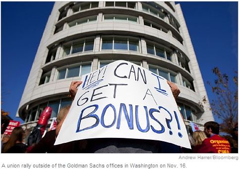 16일 워싱턴 골드만삭스 오피스 앞에는 '나도 보너스 좀 줄래?!(Hey! Can I get a bonus?!)'라고 쓴 피켓을 든 시위대가 진을 쳤고, 19일 뉴욕타임즈는 '과연 골드만삭스의 자선적 행동이 충분한가?(Is Goldman's charitable gesture enough?)'라는 비평을 내놨다.