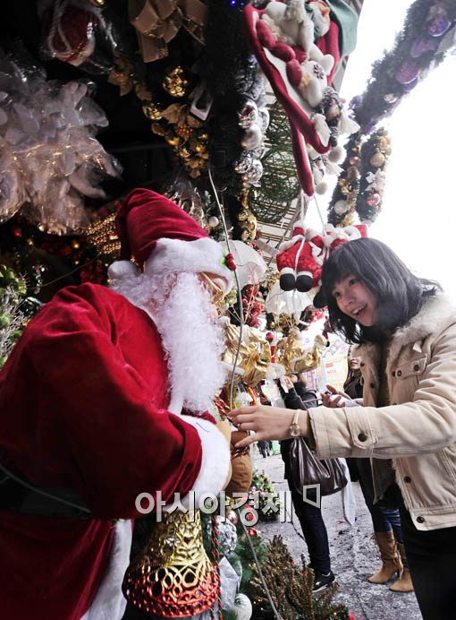 [아시아경제 윤동주 기자] 크리스마스를 한달여 앞둔 20일 서울 남대문시장의 한 샵에 다양한 크리스마스 장식품이 지나는 시민들의 눈길을 끌고 있다.