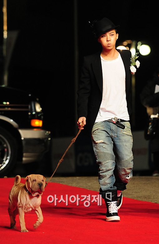 지드래곤은 21일 오후 서울 잠실 실내체육관에서 열린 '2009 엠넷 아시안 뮤직 어워드(Mnet Asian Music Awards·이하 2009 MAMA)' 레드카펫 행사에 애완견 가호와 함께 나타났다.