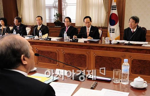 회의에 참석한 정운찬 국무총리가 '요즘 언론보도를 보면 세종시의 모든 계획이 끝난것' 같다는 내용의 발언을 하고 있다.
