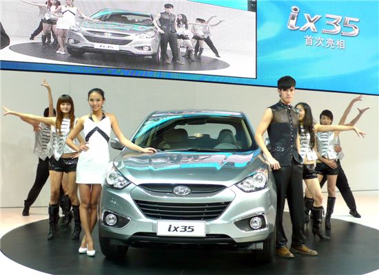 현대차는 23일(현지시각) 중국 광저우 수출입상품 교역회 전시관에서 열린 '2009 광저우 모터쇼' 프레스데이 행사에서 소형 SUV 투싼ix(현지명 ix35)를 선보였다.