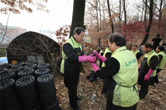 특히 LH는 통합공사 출범에 따른 공사의 사회적 역할을 확대하기 위해 기존 한국토지공사의 ‘온누리 봉사단’과 대한주택공사의 ‘디딤돌 봉사단’을 통합, ‘LH 나눔봉사단’으로 출범시켰다. 여기에는 참여형 사회공헌 활동을 통한 조직일체감 형성을 목표로 이지송 사장을 비롯한 임직원 모두가 동참했다.