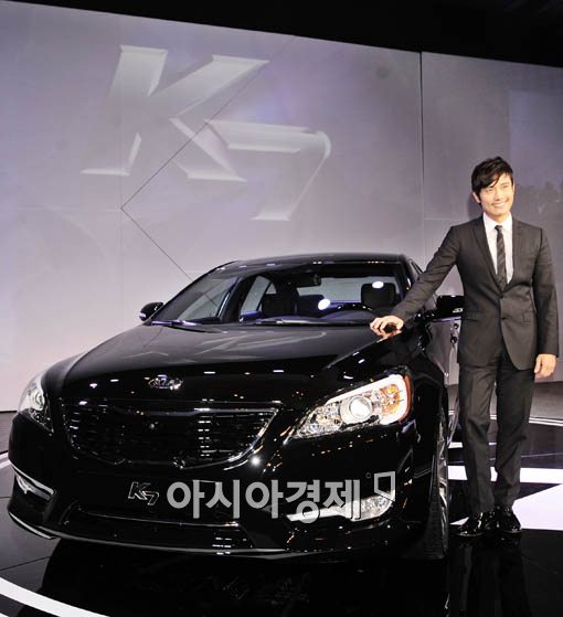 'K7' 모델로 활동하는 배우 이병헌이 'K7'과 함께 포즈를 취하고 있다.