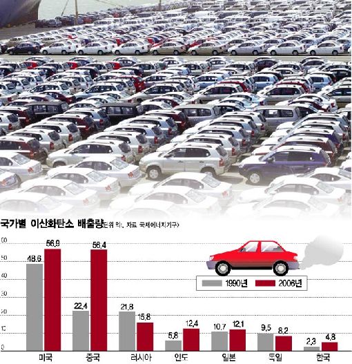 그러나 사정은 녹록치가 않다. 실제로 환경부, 교통안전공단에 따르면 지난 2005년을 기준으로 한국 에너지 부문 이산화탄소 배출량은 5억 9100만t 정도로 세계 6위를 기록하고 있으며, 증가율은 지난 1990년과 비교해 98.7%로 세계에서 가장 높을 만큼 심각하다. 수송 부문만 떼어놓고 살펴봐도 가운데 같은 기간 증가율은 두 배를 넘었다.