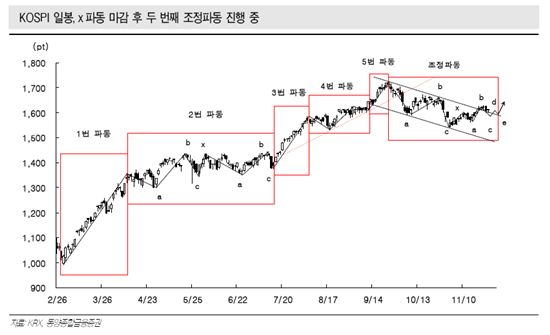 동양종합증권은 기간 조정 국면은 약 10거래일간 지속된 후 본격적인 방향을 형성할 것으로 내다봤다.