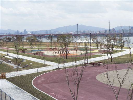 마포대교를 건너 여의도한강공원에 들어서면 새롭게 조성된 너른들판에 물빛광장, 분수, 빛의 폭포, 플로팅 스테이지까지 눈이 즐거워진다.