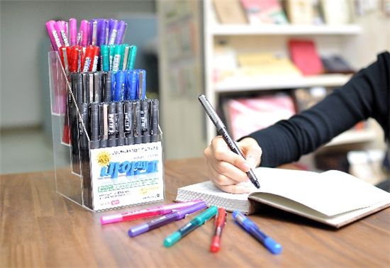 잉크잔량 유무를 확인 할 수 있도록 투명바디로 제작됐으며 흑색, 청색, 적색, 녹색, 보라, 핑크 여섯 가지 색상이 있다. 개당 가격은 1000원.