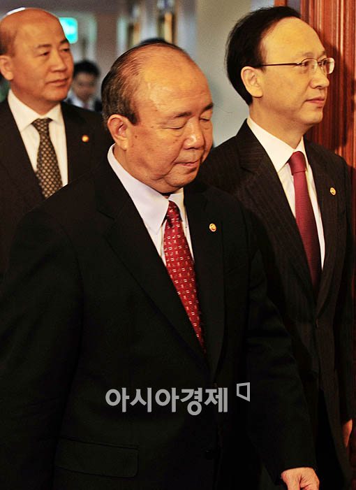 [아시아경제 윤동주 기자] 철도노조 파업이 6일째를 맞으며 장기화 조짐을 보이고 있는 가운데 1일 오전 서울 세종로 정부 종합청사에서 열린 국무회의에 참석한 정종환 국토해양부 장관이 굳은 표정으로 회의장으로 들어가고 있다.